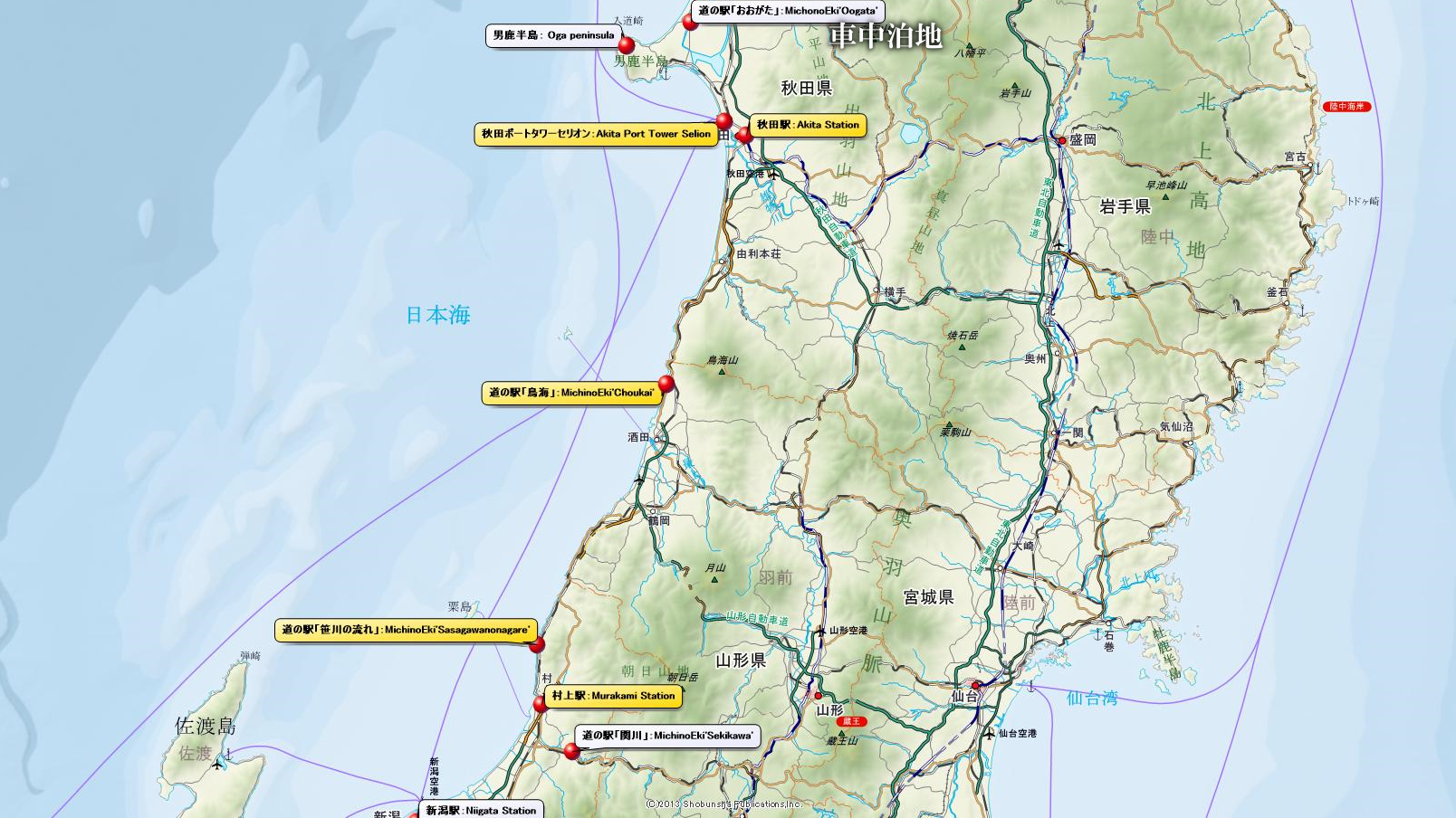I left Niigata, passed Yamagata while looking at the Sea of Japan on the left, I stayed overnight at Ogata village in Akita.