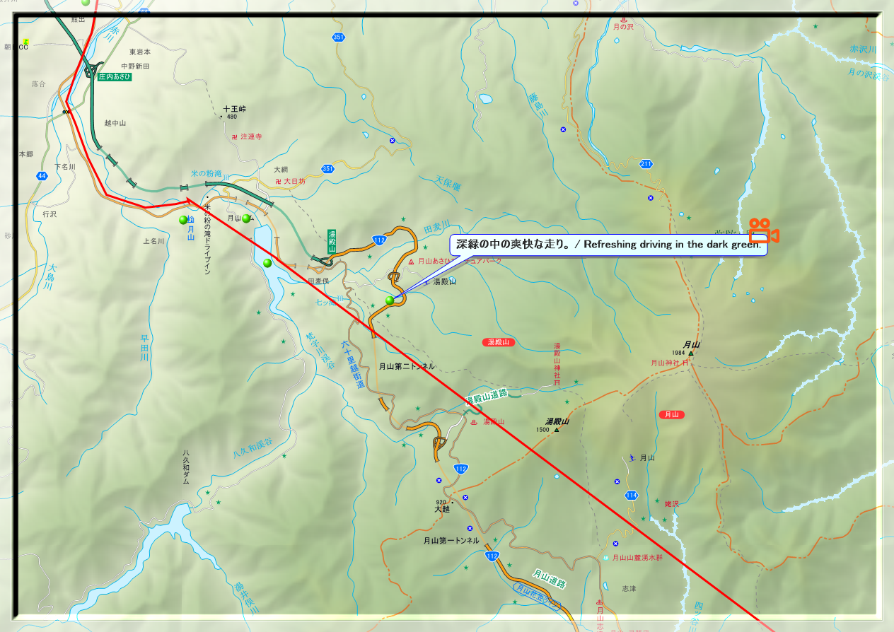R112:月山道路・月山花笠ライン・あさひ月山湖展望広場・深緑の中の爽快な走り。R112: GASSAN Road ・ GASSAN HANAGASA Line ・ Asahi GASSAN Lake Observation Square ・ Refreshing driving in the dark green.
